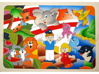 Большой белый пароход пристал у берегов Лимпопо – сказочной африканской страны. Ванечку и Танечку здесь встречают милые и приветливые звери: Жираф с бабочкой, огненно-рыжий Лев, фиолетовый Осьминог, большой и добрый Слон, весёлые Зайчики с морковкой, дружелюбный Бегемот, разноцветный Попугай, забавный Дельфин. Это пособие 3 в 1: плоскостная мозаика-пазл из 122 деталей, развивающее пособие для детей дошкольного возраста, сюжетно-ролевая игра, благодаря которой можно не только рассказывать любимые сказки, но и придумывать новые истории.
