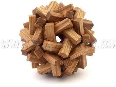 Этот деревянный узел состоит из 30 одинаковых брусочков, переплетённых между собой. Узел этот не сложно разобрать, но составить его снова будет не так просто. Им можно просто любоваться, а можно отыскивать некоторые любопытные геометрические закономерности.