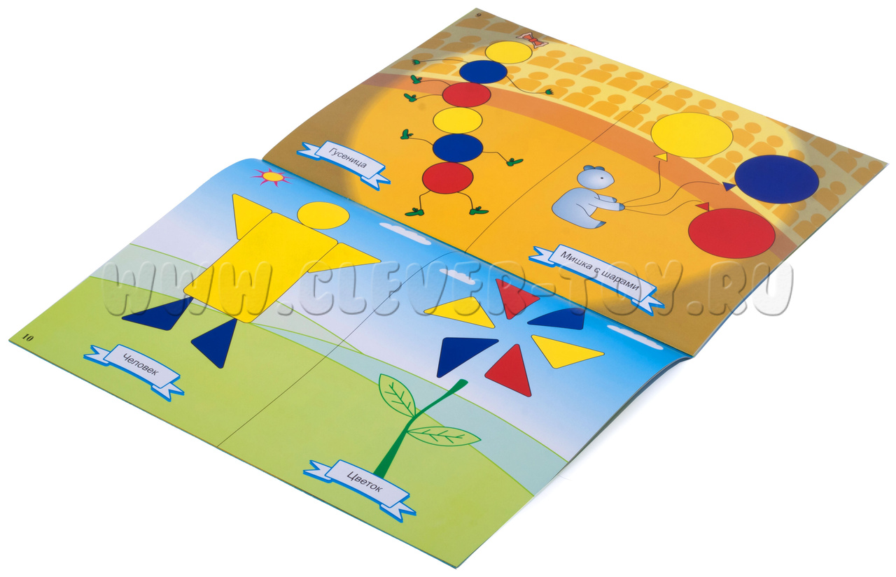 Накладывая цветные блоки на цветные изображения в альбоме, Ваш ребенок сможет неоднократно испытать всю радость развития, наблюдая как под его руками плоскостные изображения превращаются в объемные предметы. Благодаря блокам малыш запомнит цвета, формы, размер, и научится логически мыслить.