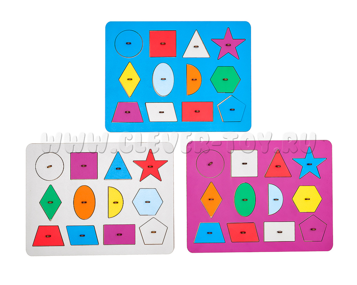 В набор входит: планшет с выемками для вкладышей (31,5*24 см) и 12 вкладышей с удобными ручками.