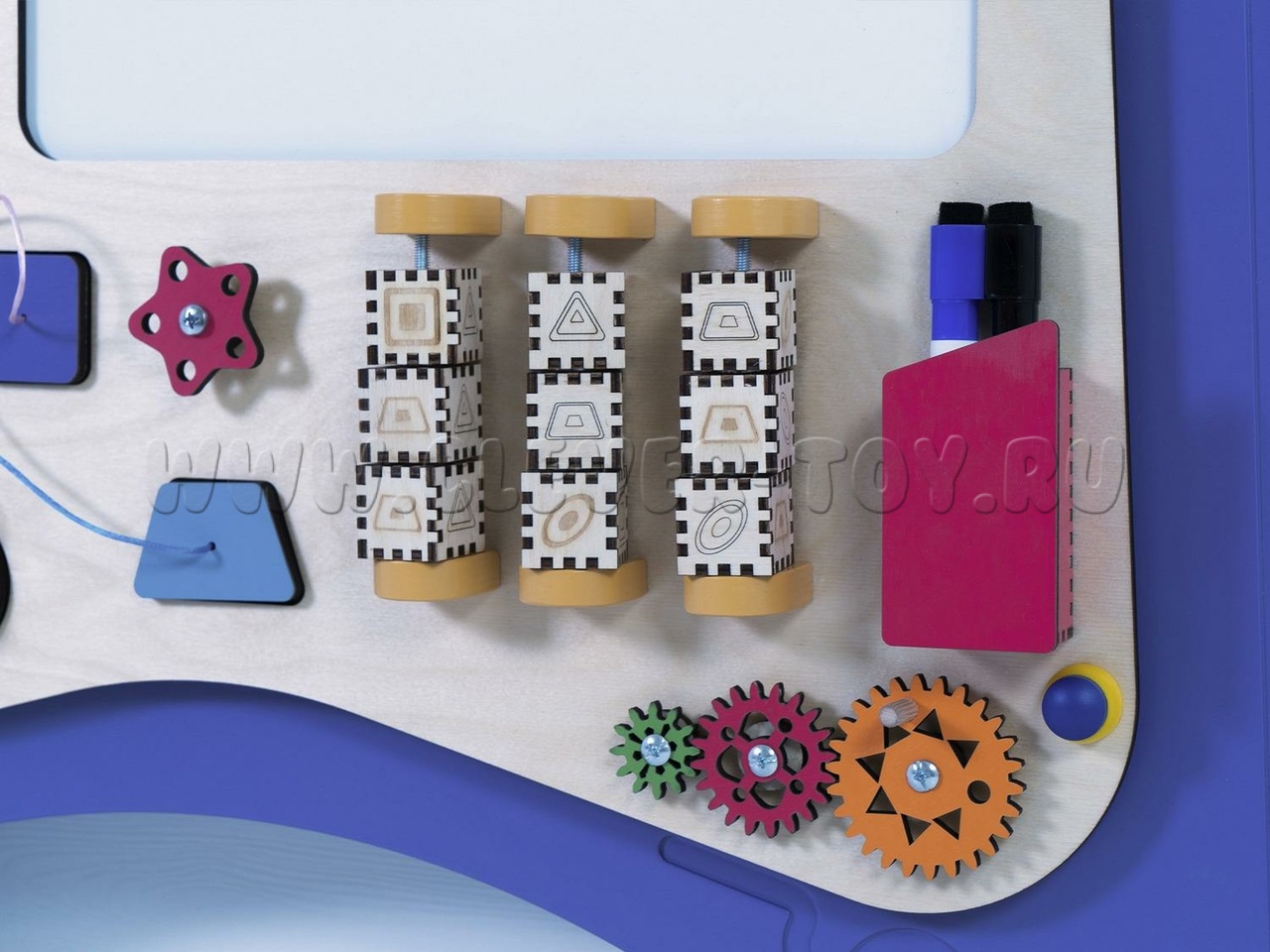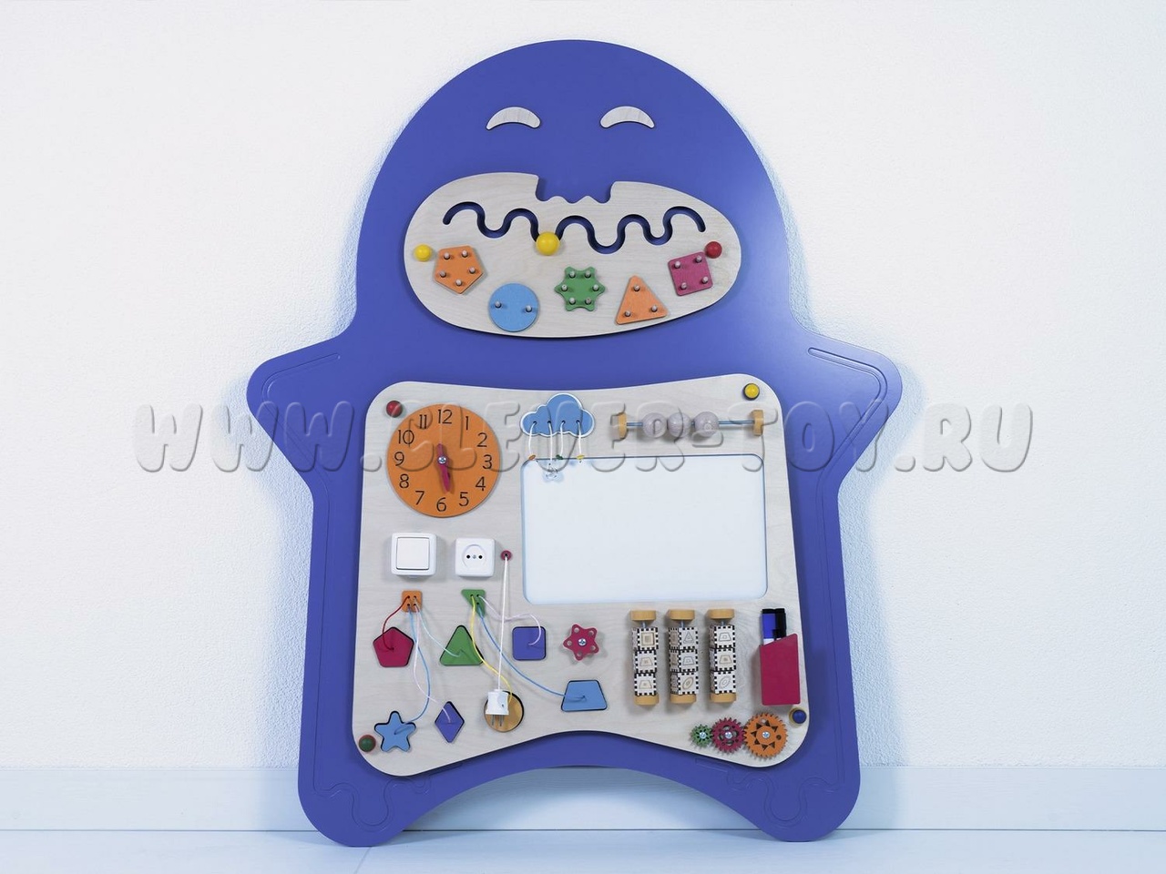 Бизиборд "Мип" предназначен для детских образовательных учреждений и помогает изучать геометрические фигуры (форму, количество углов, вид, цвет и особенности). Задания составлены по принципу "от простого к сложному". Например, при изучении геометрических фигур можно тренироваться в счёте, определяя количество углов. Также можно рисовать запомнившиеся фигуры или играть в крестики-нолики, вращая фигуры.