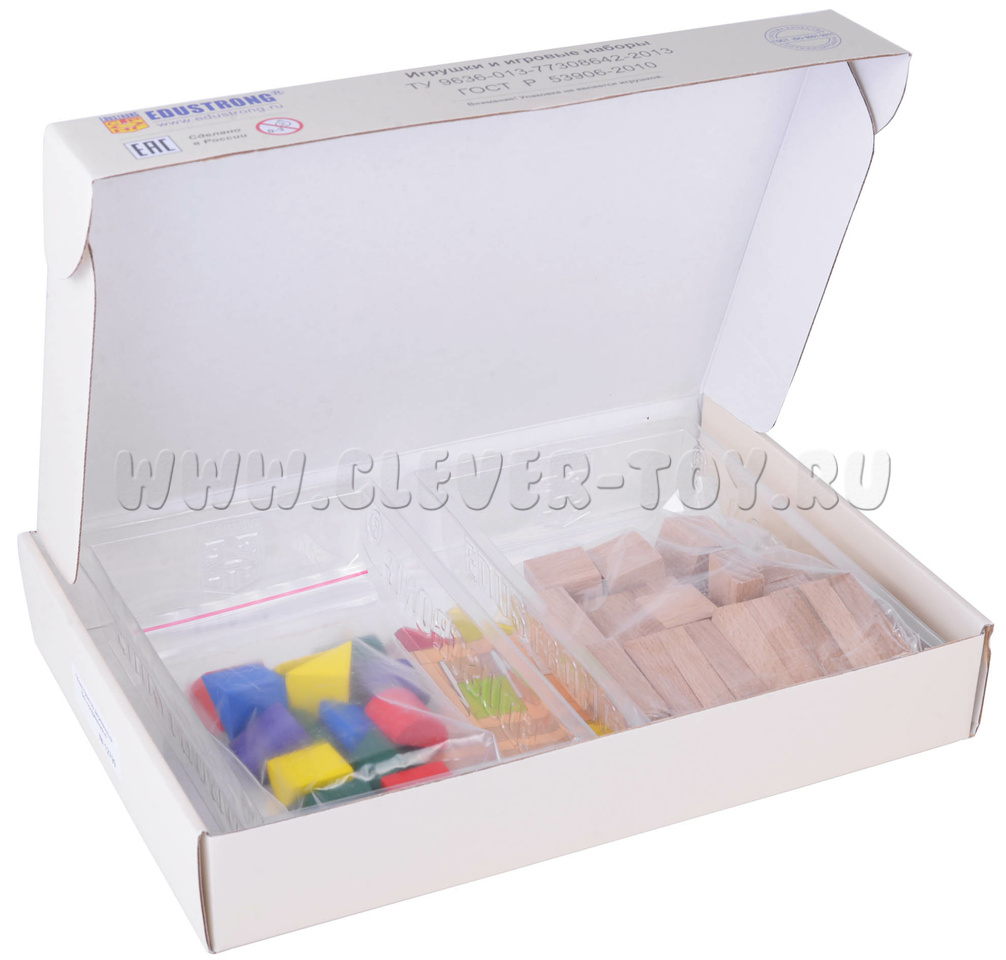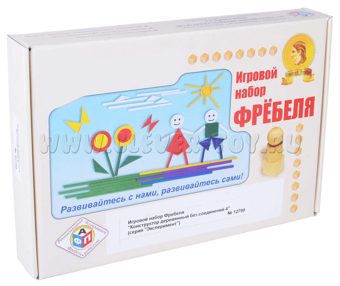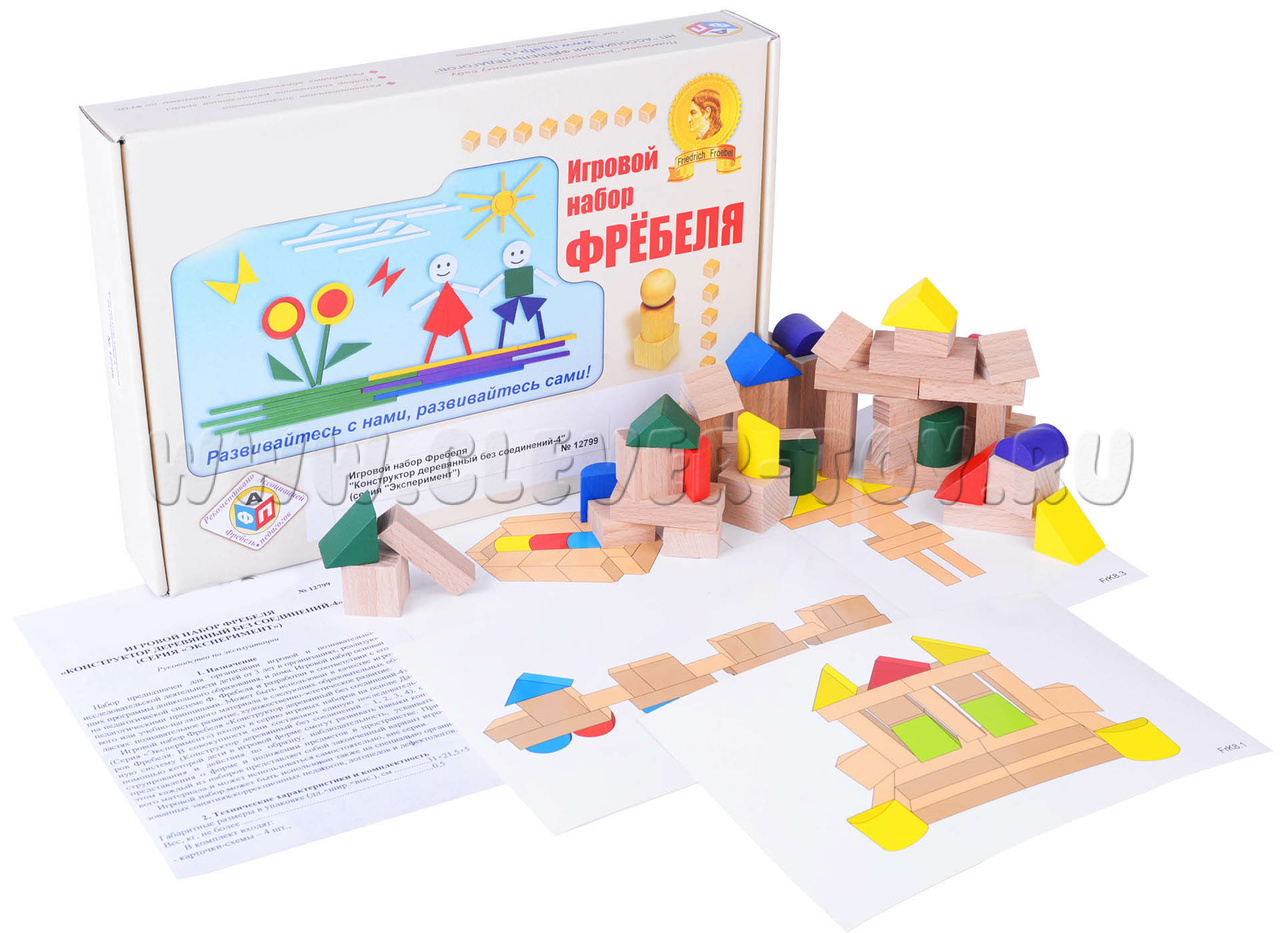 Игровой набор Фрёбеля «Конструктор деревянный без соединения - 4» представляет собой специально составленные комплекты из элементов «Даров Фрёбеля» и помогают детям развивать:
