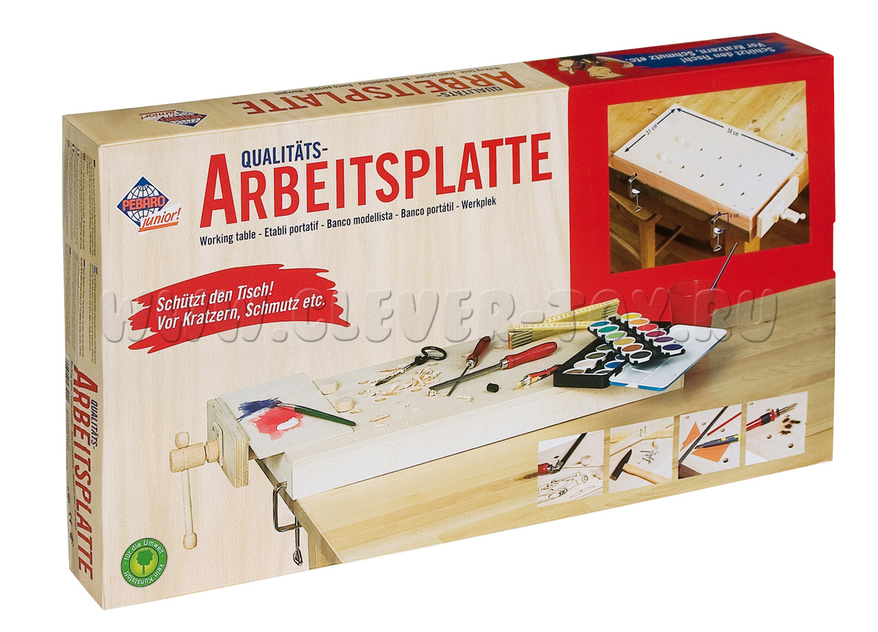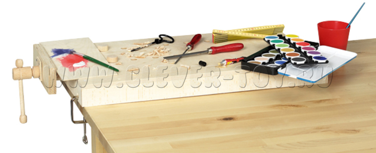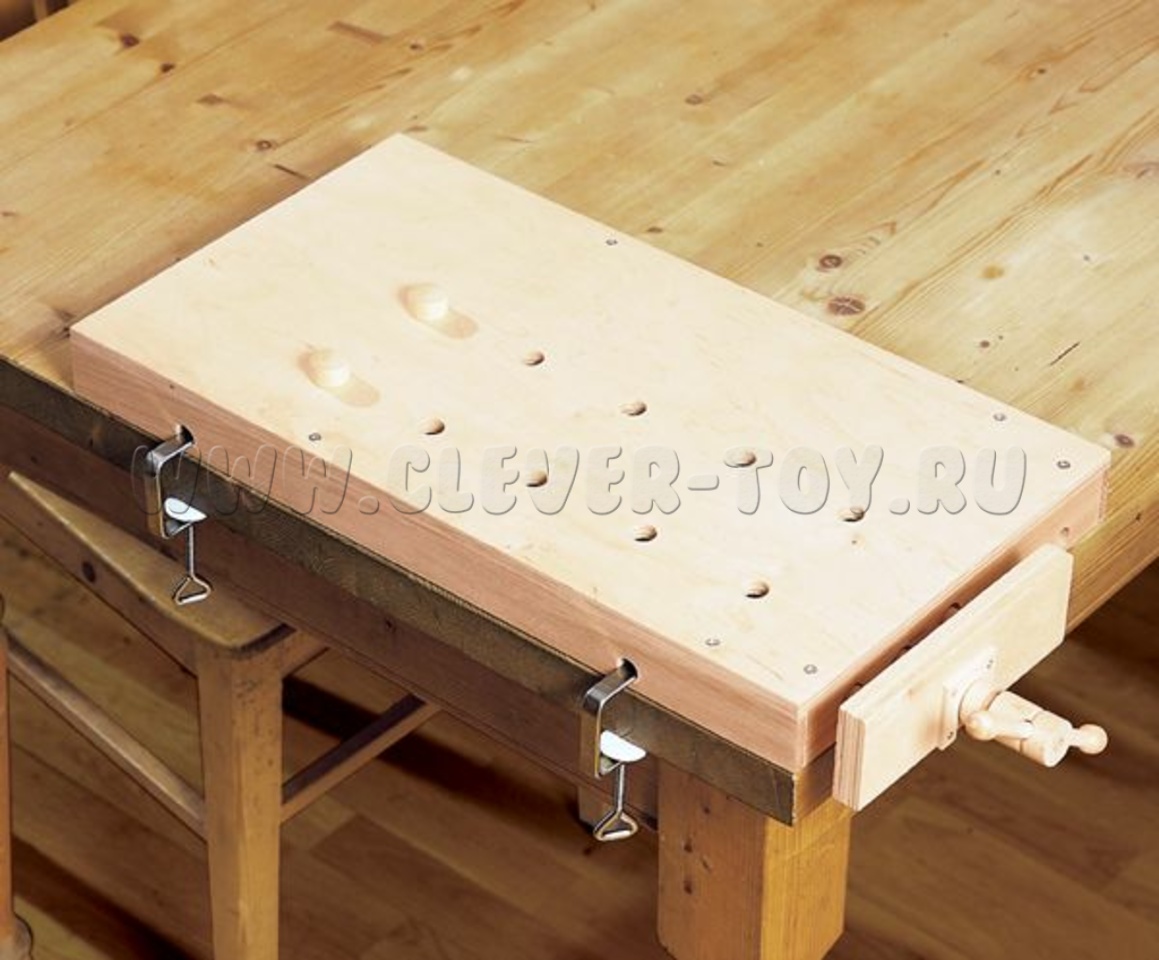 Конструкция портативного верстака разработана специально таким образом, чтобы защитить Ваш письменный или обеденный стол от царапин и прочих повреждений. Верстак оборудован зажимом и ограничителями, с помощью которых можно надежно зафиксировать фанерную пластину для выпиливания во время работы.