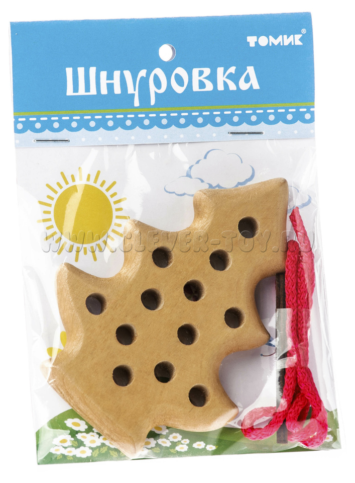 Состоит из иголки, шнурка, елочки с 12 отверстиями.