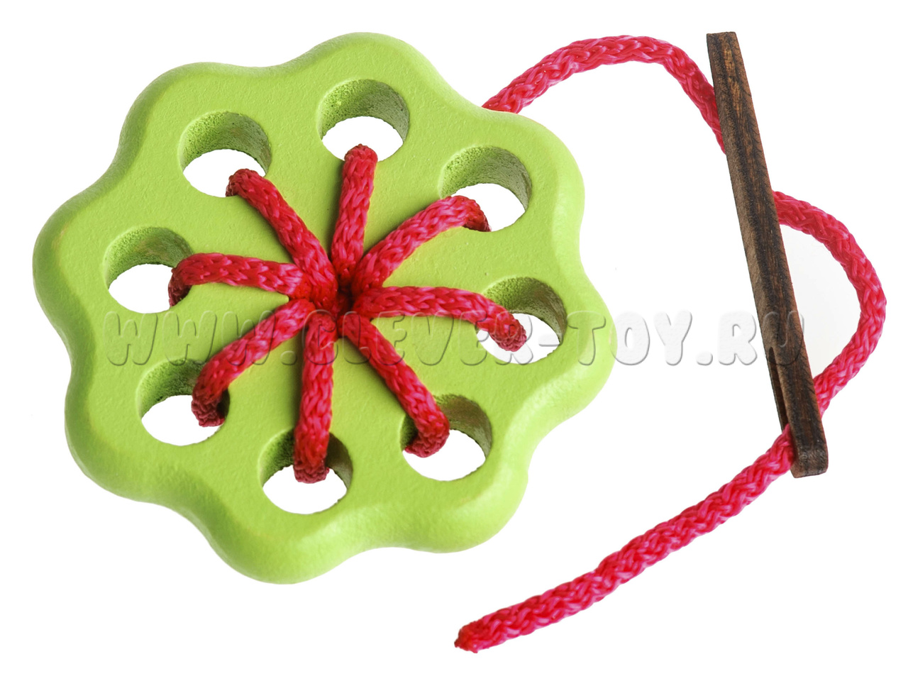 Состоит из иголки, шнурка, цветка с 5 отверстиями.