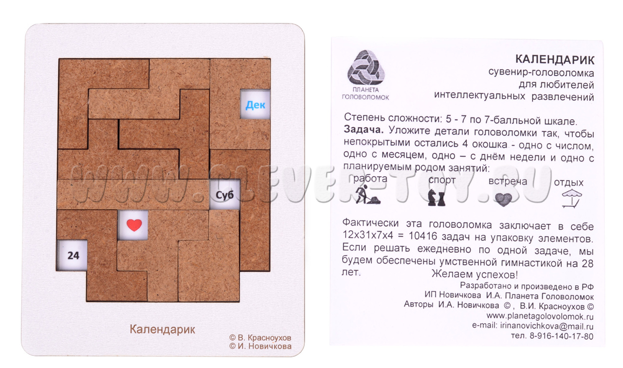 "Календарик" сувенир-головоломка для любителей интеллектуальных развлечений.