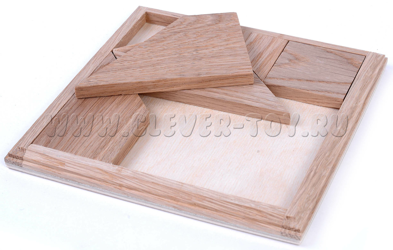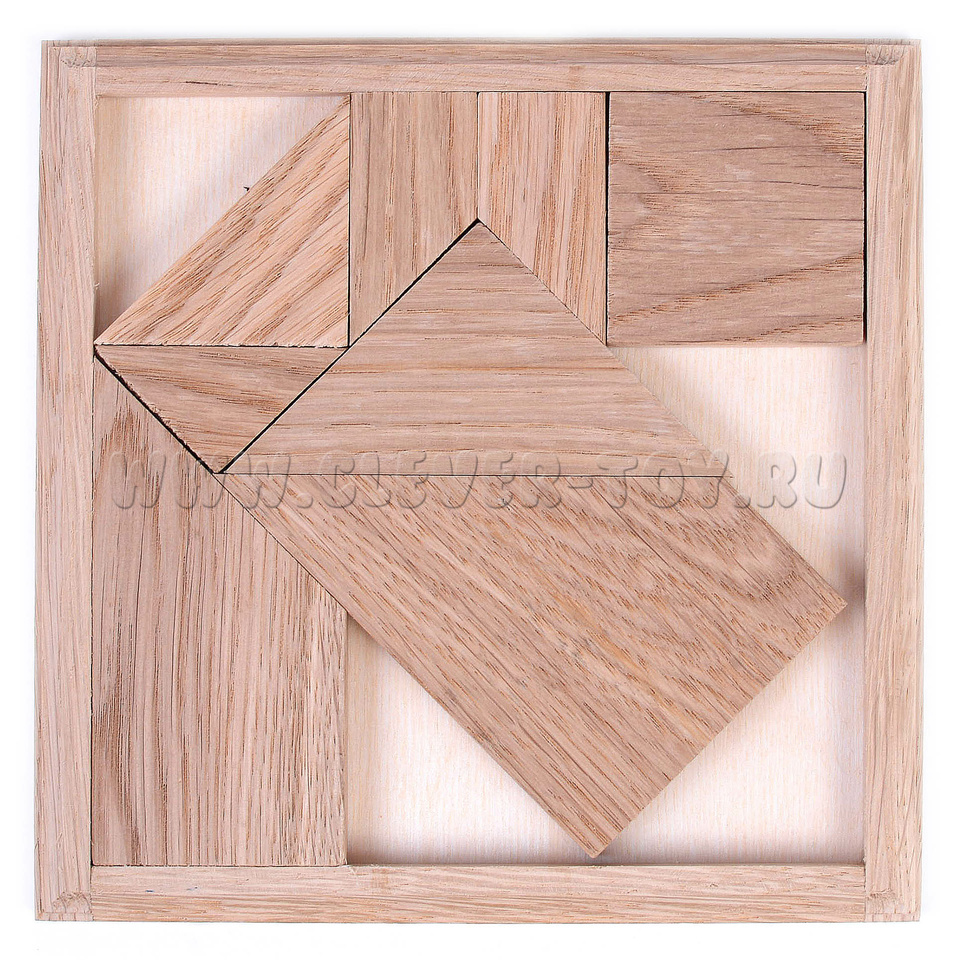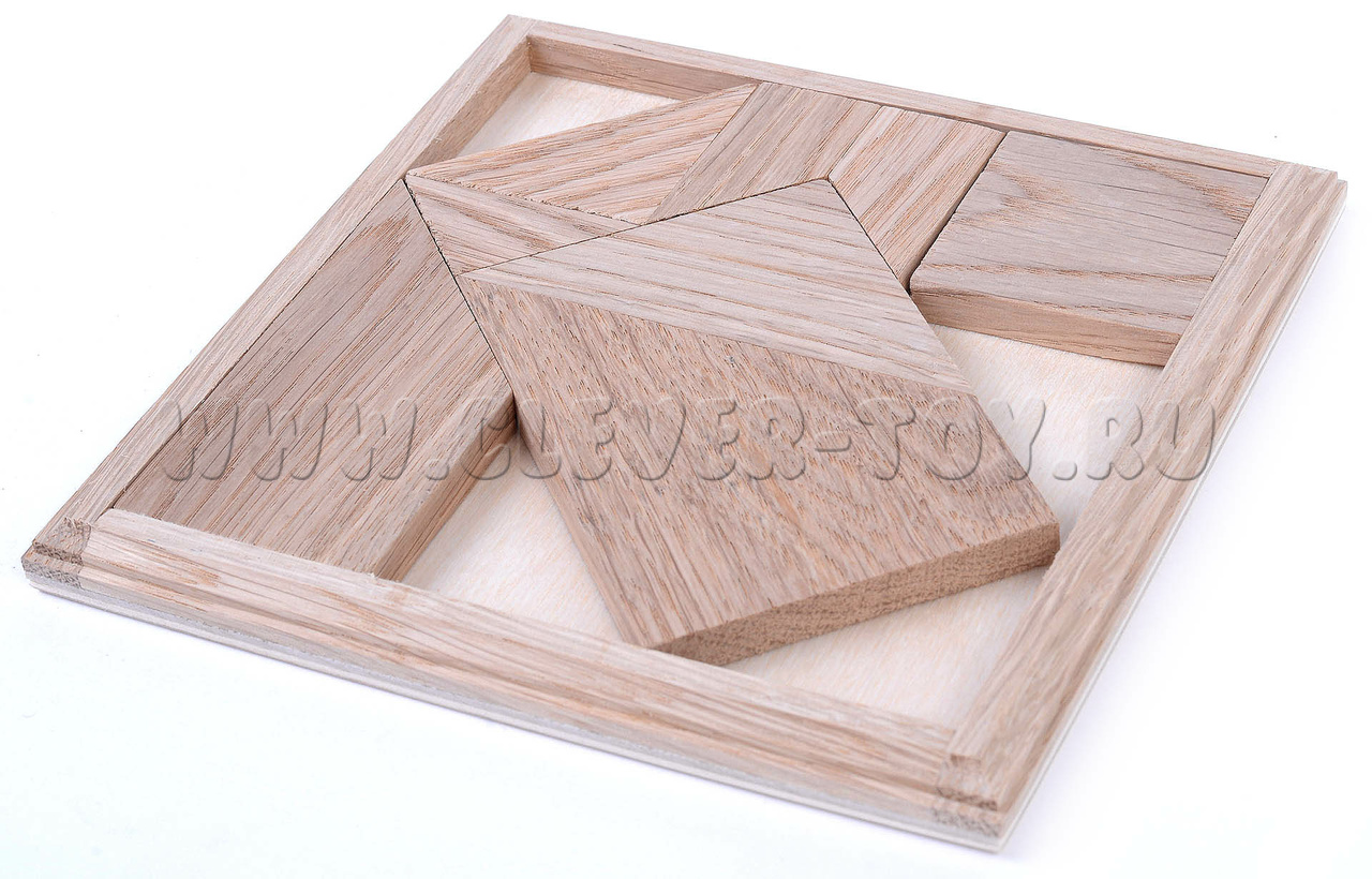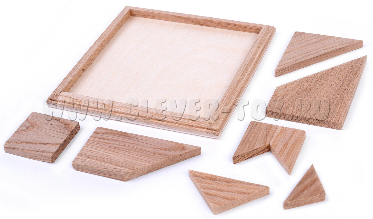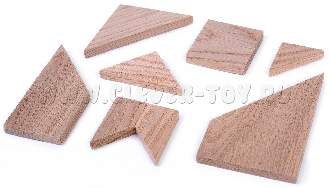 Деревянная головоломка "Слагалица" состоит из 7 игровых элементов и коробочки.