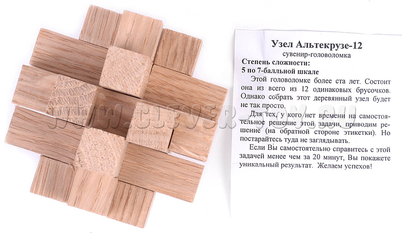 Задача: разобрать головоломку и собрать её обратно. Но это будет не так просто: потребуется наблюдательность и умение логически мыслить.