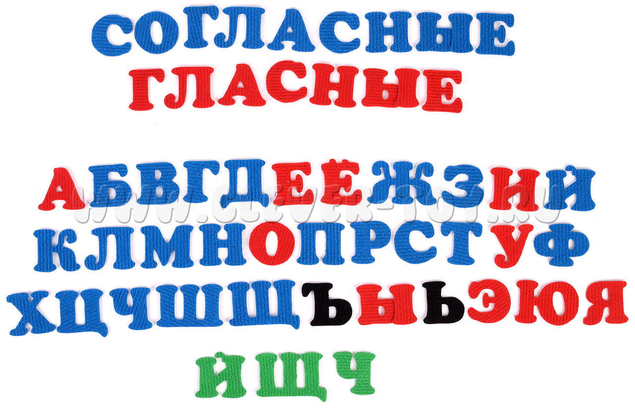 Обратите внимание, что в наборе есть "синие" гласные и "красные" согласные, это для составления надписей "Гласные" "Cогласные". Так же можно использовать эти буквы для проверки ребёнка.