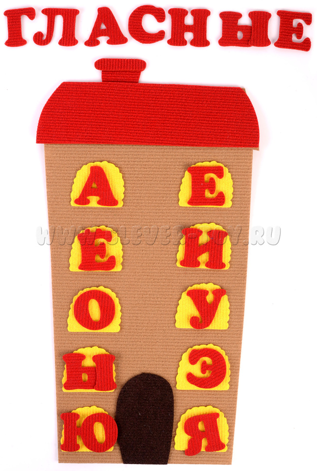 с красной крышей – для гласных букв с 10 окнами (размер: 27х50 см),