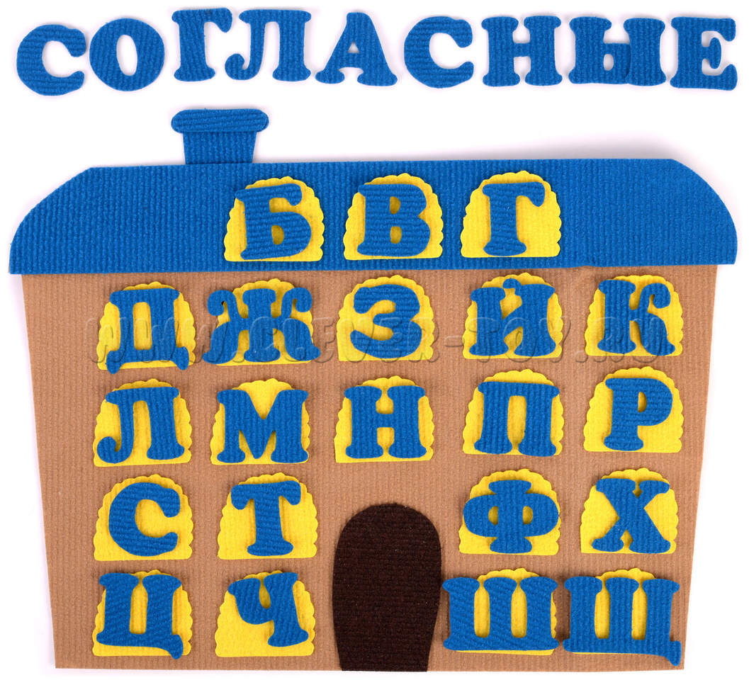 с синей крышей– для согласных букв с 21 окном (размер: 47х36 см),