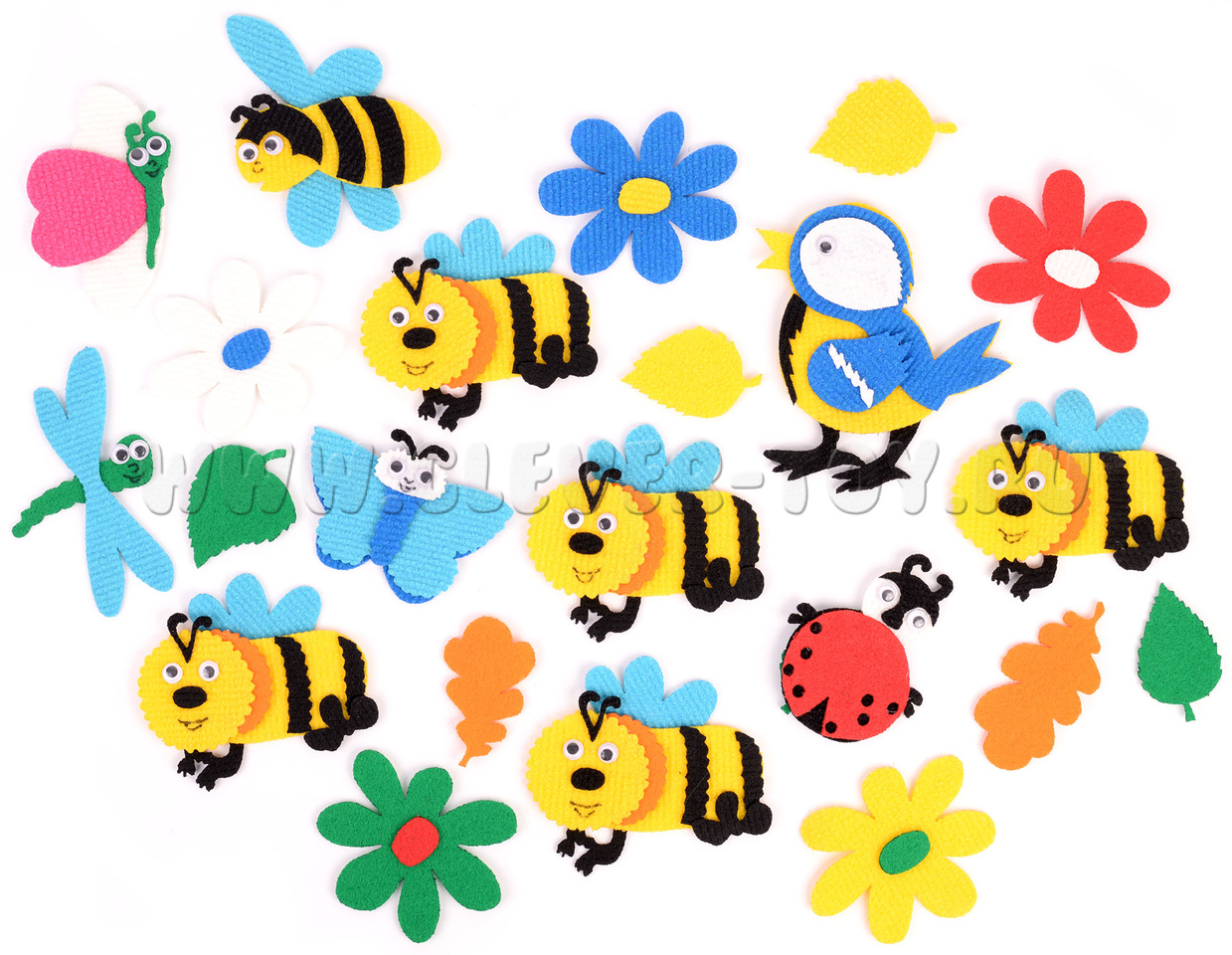 Размер насекомых и цветов: от 8 до 15 см.