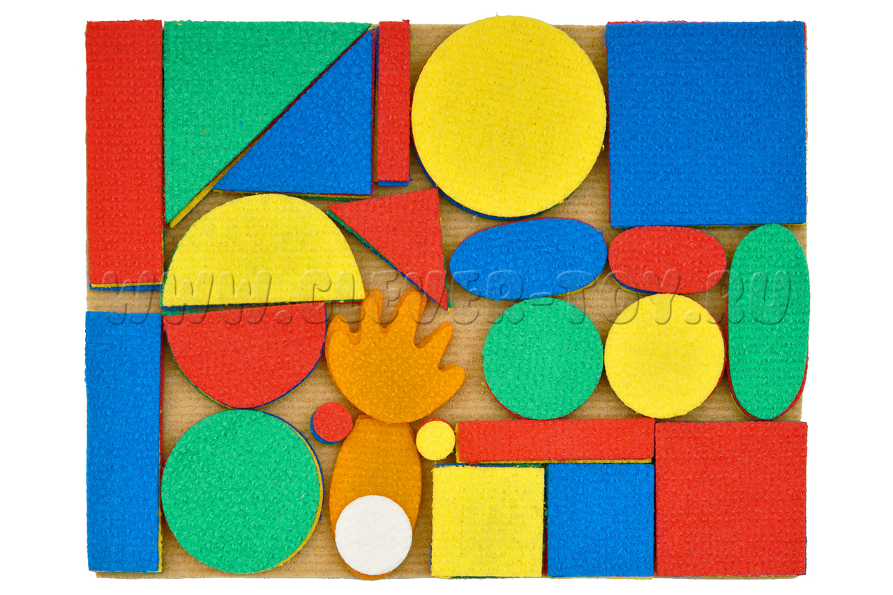 • прямоугольники большие, средние, маленькие 4-х цветов - 16 штук,