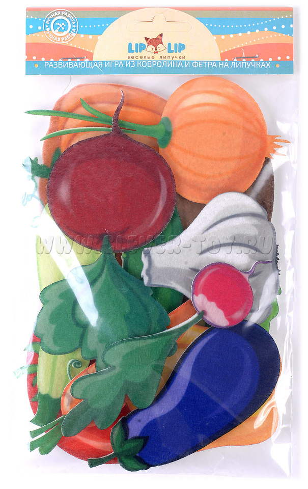 Игра включает в себя набор фигурок овощей, выполненных из мягкого и приятного на ощупь фетра. Каждый овощ имеет свой уникальный цвет и форму, что позволяет детям легко запомнить их названия и внешний вид.