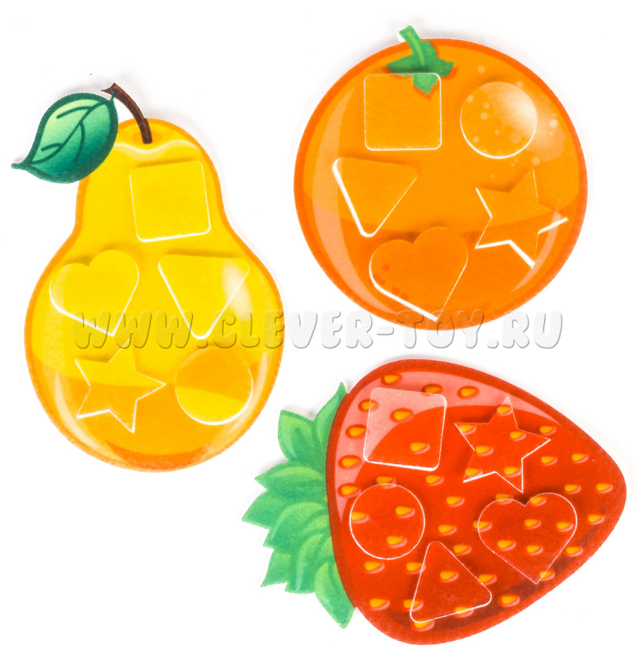 • маленькие фигурки на липучках, звезда, треугольник, квадрат, круг и сердце (по 5 фигур на каждый фрукт).
