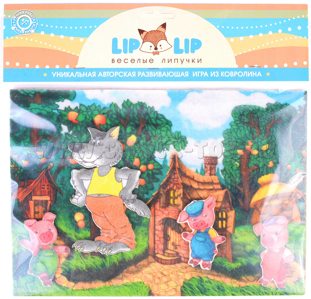 Набор Веселых липучек “Три поросенка“ сделан из фетра. В комплекте идет игровое поле и персонажи из сказки. А также есть карман, куда можно убрать игрушки после игры.