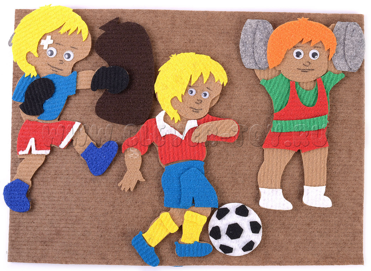 Многоразовая аппликация для плоскостного конструирования посвящена самым популярным мировым видам спорта: хоккею, фигурному катанию, футболу, тяжёлой атлетике, хоккею, лыжному спорту, теннису.