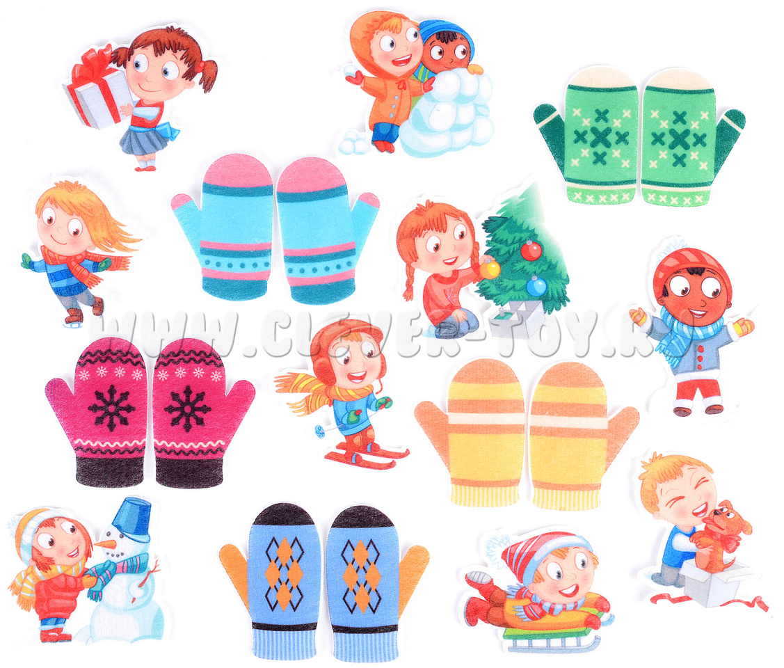 • Разноцветные варежки (5 пар).