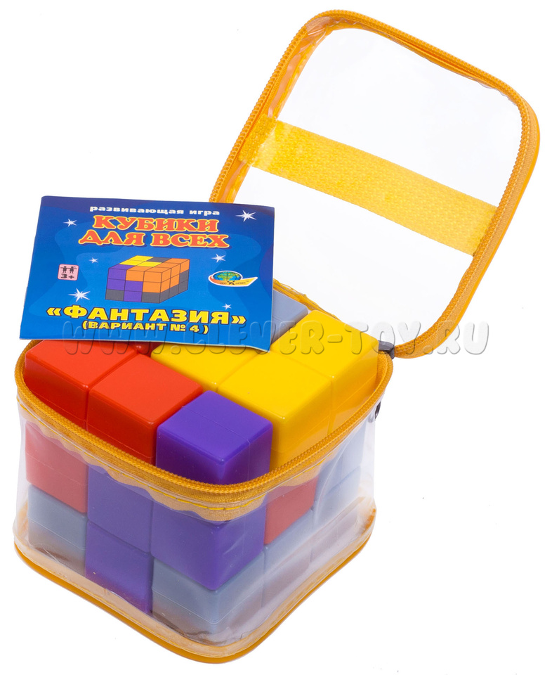«Кубики для всех Фантазия»- это логическая игра из серии кубиков от ООО «Корвет». В серию также входят кубик № 1 «Уголки», кубик № 2 «Собирайка», кубик № 3 «Эврика» и кубик № 5 «Загадка». Самые простые варианты представлены в кубиках 1 и 2, усложнение – в кубиках 3,4,5.