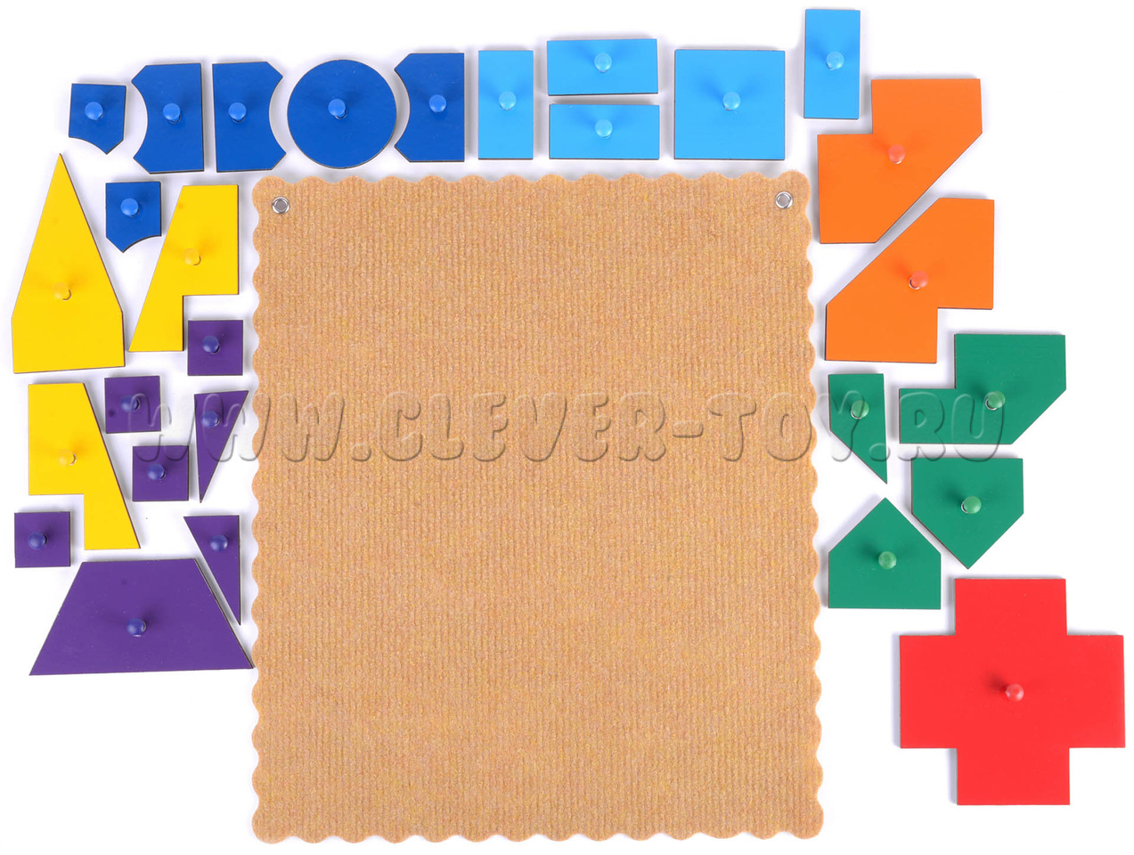 • 7 цветных Чудо-Крестиков: целый – красного цвета, из 2-х частей – оранжевый, из 3-х частей – жёлтый, из 4-х – зелёный, из 5-ти частей – голубой, из 6-ти частей – синий, из 7-ми частей – фиолетовый;