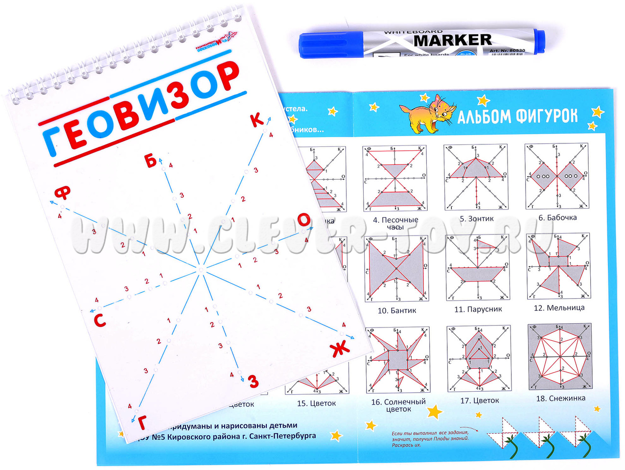 • «Геовизор» - альбом с прозрачным экраном, размеченным координатной сеткой с точками (отверстия экрана) и ламинированной подложкой;