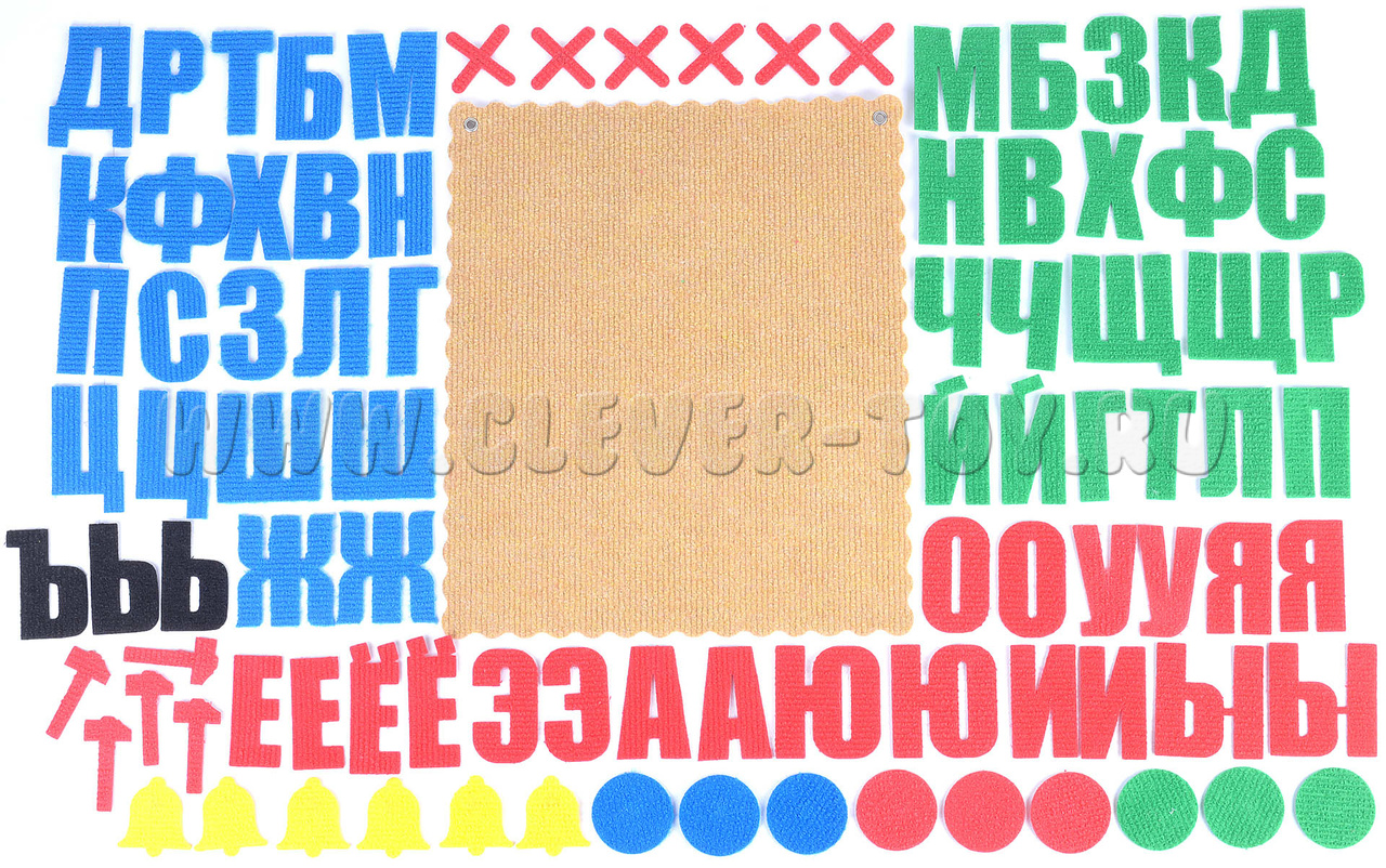 Буквы выполнены из современного безопасного материала ковролин, чётко вырезаны на специальном станке, легко крепятся на игровое поле с помощью многоразовых липучек с обратной стороны.
