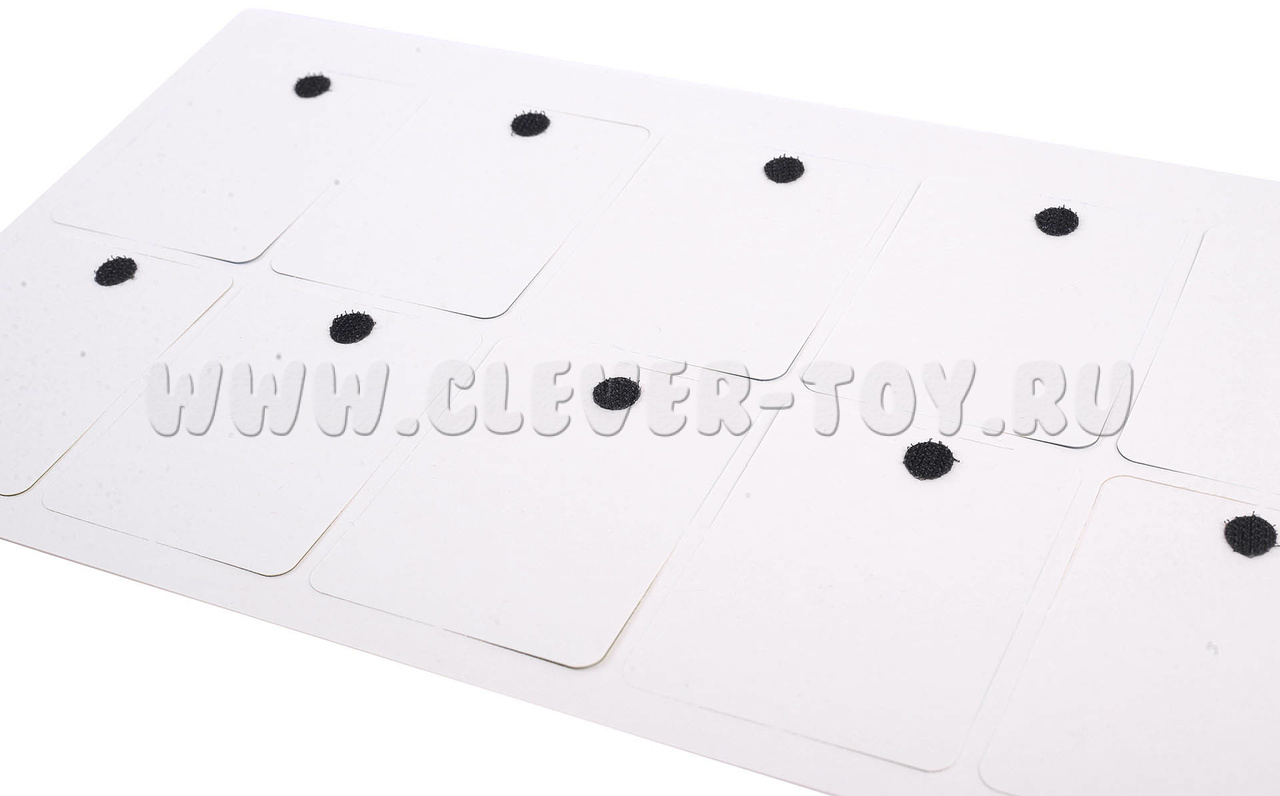 Карточки выполнены на картоне, полноцветная печать, с обратной стороны снабжены липучками для удобного и прочного крепления на игровом поле «Коврограф Ларчик». Размер карточки:84*99 мм.