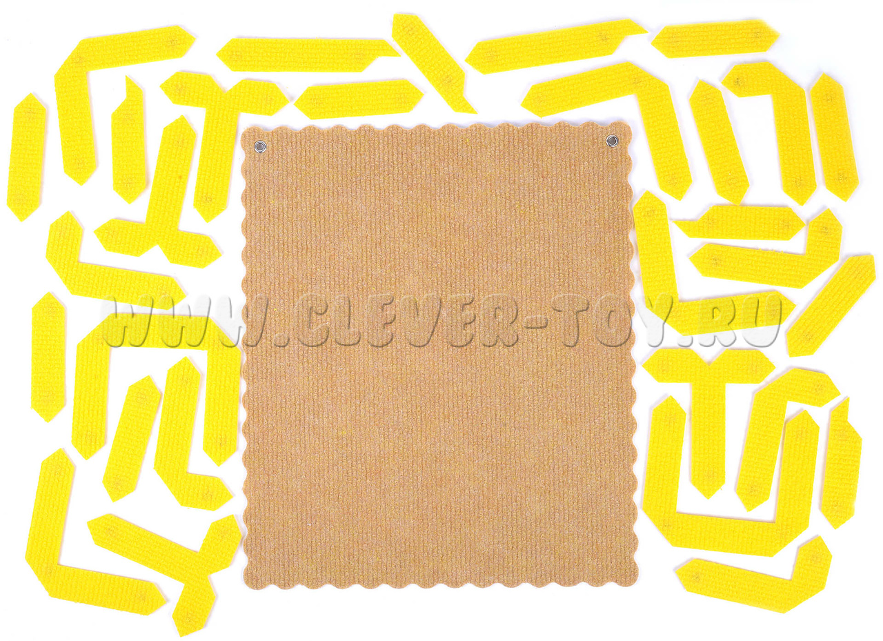 - 30 элементов из ковролина разной формы жёлтого цвета– «стрелочки» 8 шт., «уголки» 4 шт., «воротики» 2 шт., «клюшки» 6 шт., «лапки» 4 шт., «совочки» 6 шт.