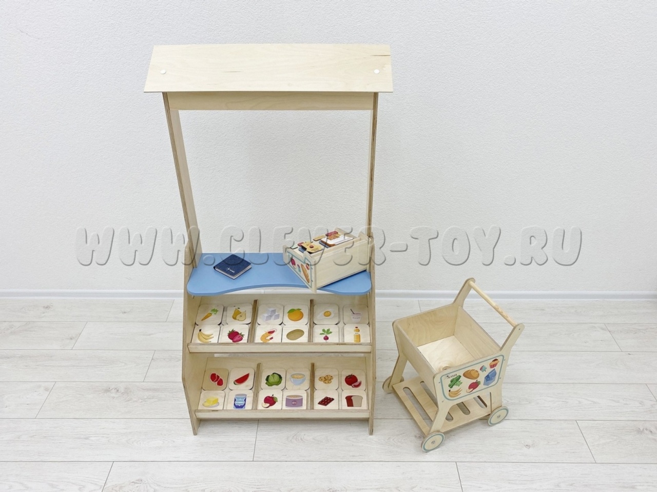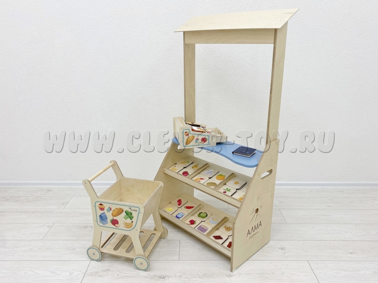 - Дополнительная атрибутика (детский киоск "Магазин" с кассой, тележкой и продуктами, макеты денег и пластиковых карт, копилки, кошельки, наборы для игры в группе на тему уроков).