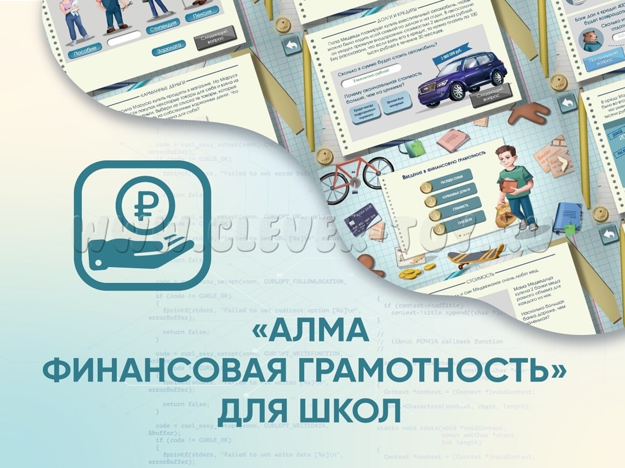 Новейшее программное обеспечение из более чем 100 аналитических и творческих задач на тему финансовой грамотности, разделенных на 4 блока: