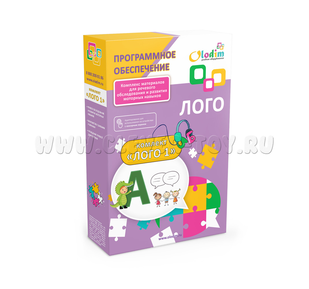 Комплект программ "Лого-1": программа в которой более 30 игр-тренажеров для занятий с детьми, имеющими речевые нарушения, речевое обследование и развитие моторных навыков, знакомство с буквами и звуками, проведение речевой диагностики.