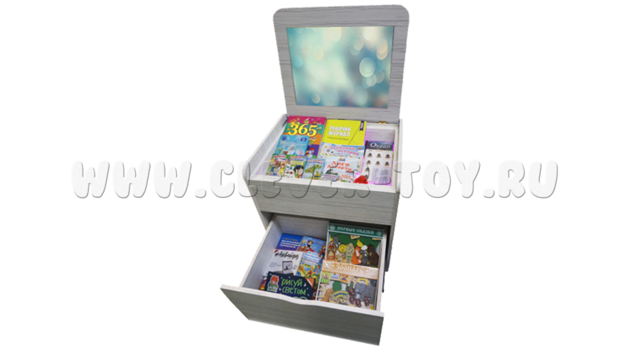 • встроенный ящик для хранения материалов и защитная крышка-столешница со встроенным акриловым зеркалом.