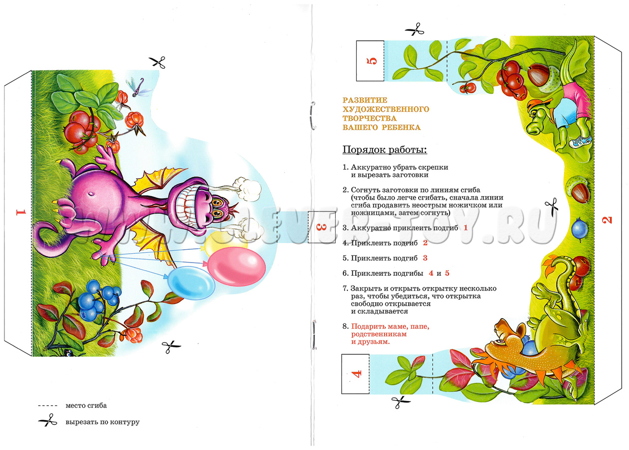 3D объёмная открытка-книжка для детского творчества "Дракончики".