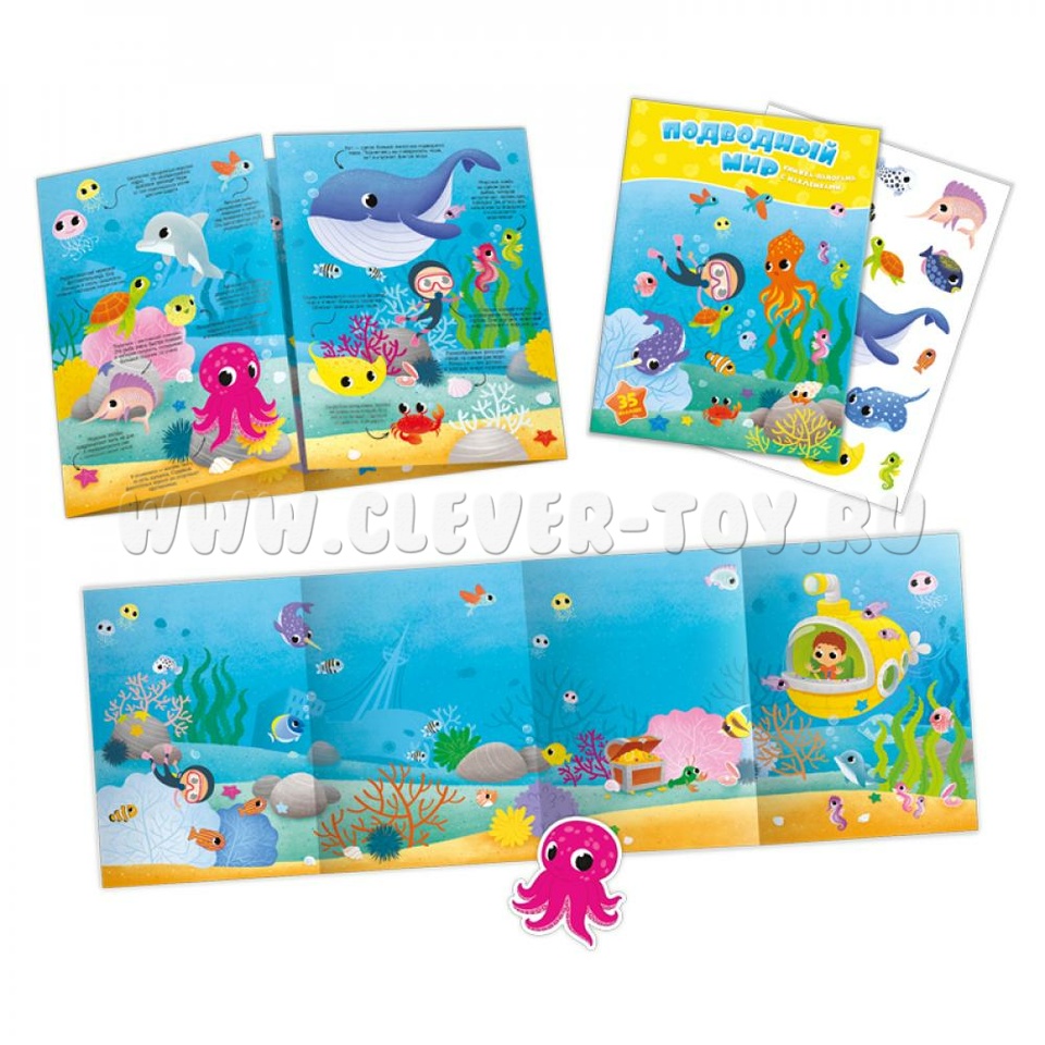 Книжка-панорама с наклейками. Подводный мир. 22х29,7 см.