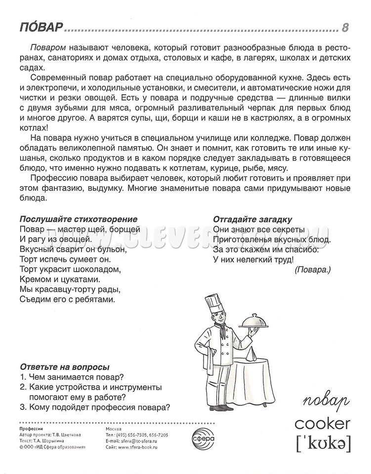 Набор карточек "Профессии" состоит из бесед, стихотворений, загадок и вопросов по теме. Комплект включает 16 цветных демонстрационных картинок с текстом на обороте, названия тем имеют перевод на английский язык.