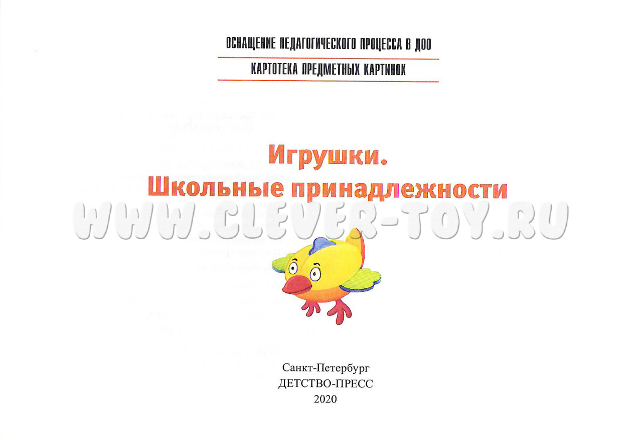 Картотека предметных картинок №17. "Игрушки. Школьные принадлежности". 3-7 лет. ФГОС. Дидактический материал.