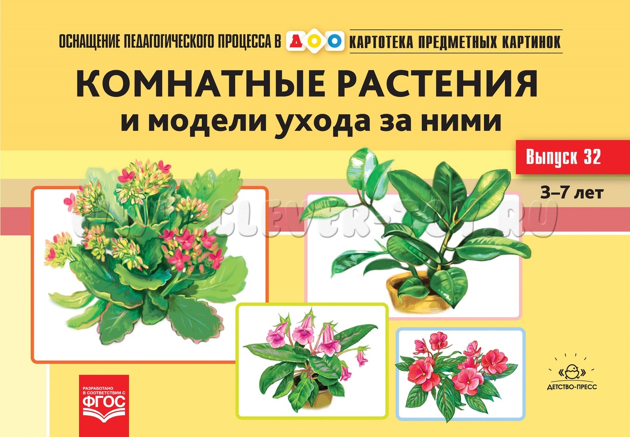 Картотека предметных картинок 32. Комнатные растения и модели ухода за ними. 3-7 лет. ФГОС