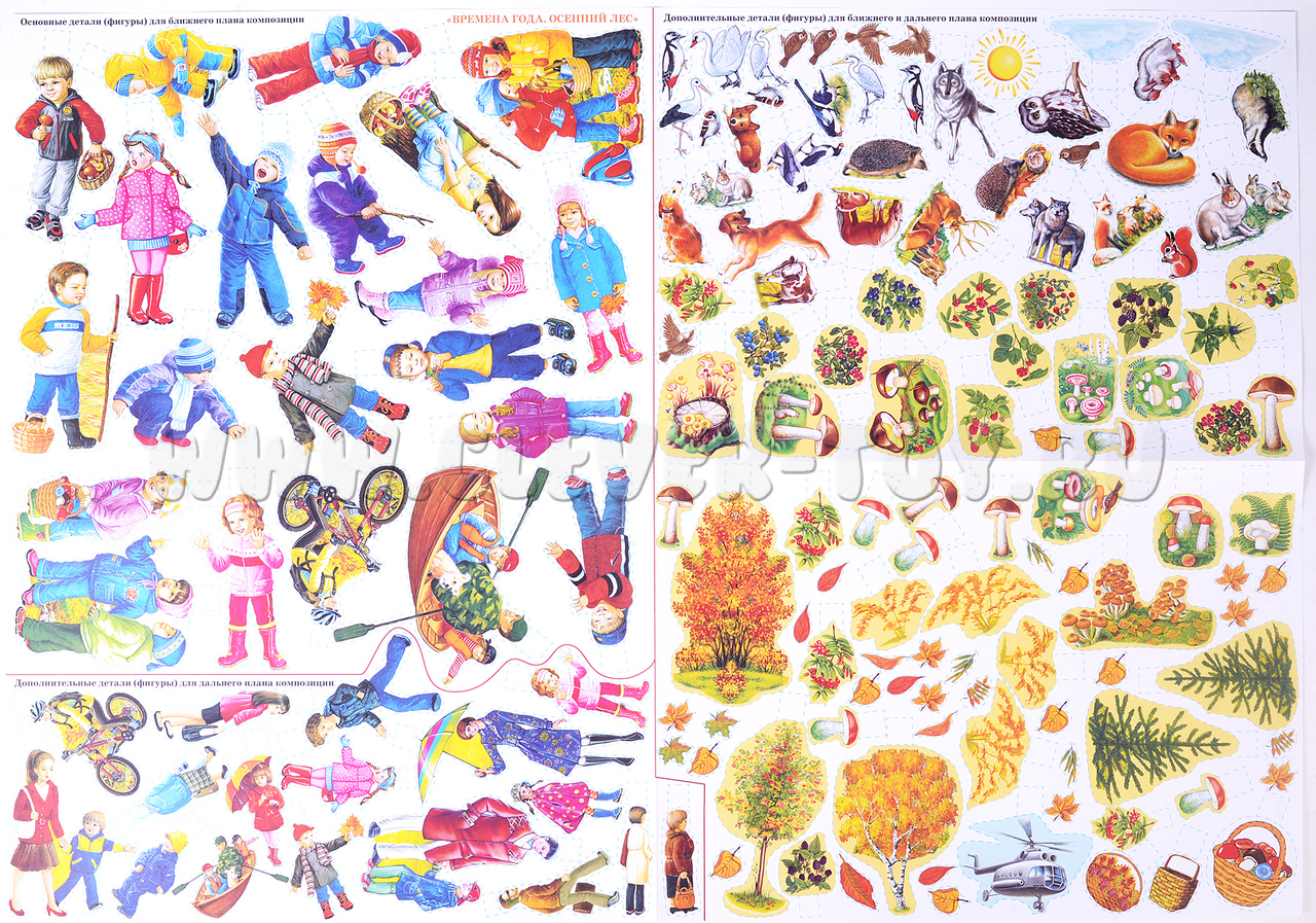• плакат (А1) с изображением основных и дополнительных фигурок (100-150 штук) для вырезания и наклеивания на сюжетную картину;