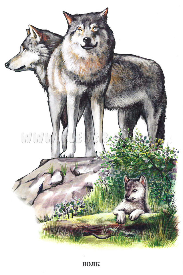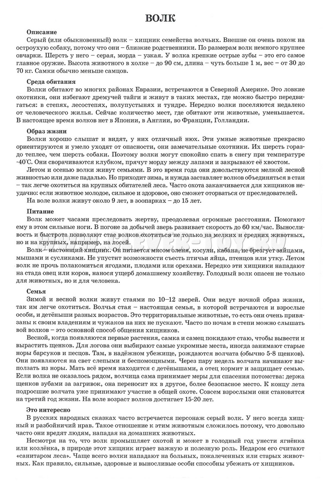 - 10 натуралистичных изображений диких животных (Ёж, бурый медведь, лось, волк, заяц, белка, олень, лиса, рысь, барсук), на обратной стороне - их описание, ареал обитания, особенности поведения, питания, образа жизни;