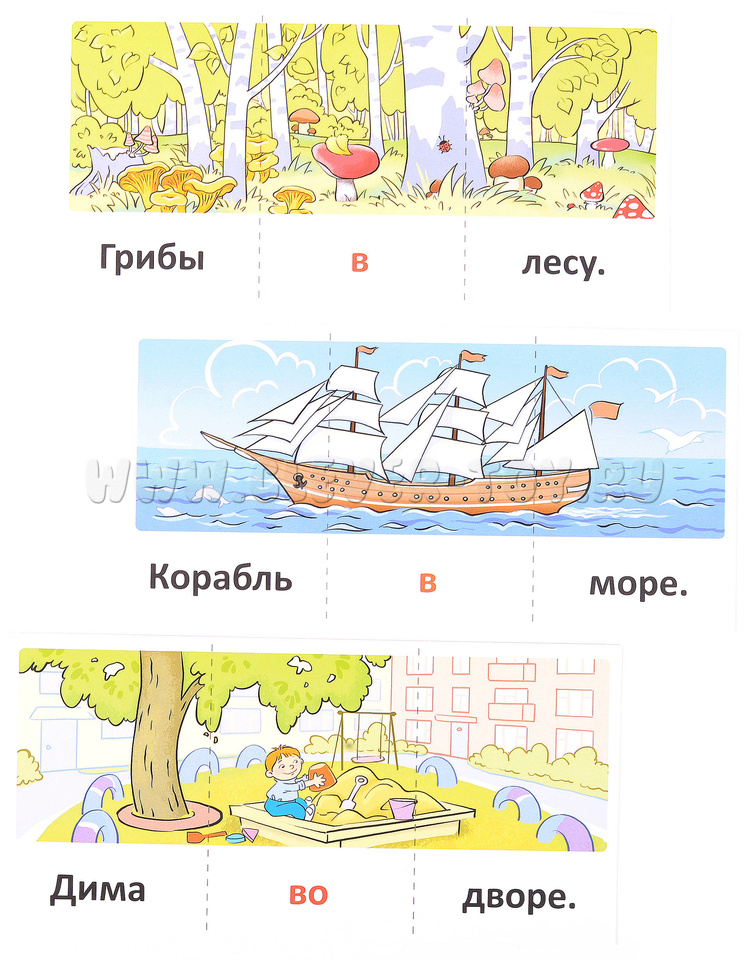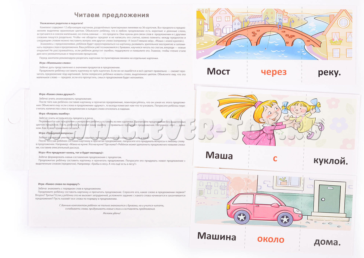 С помощью этого комплекта ваш ребенок сможет в увлекательной игровой форме освоить предлоги и порядок слов в предложении. Он научится правильно задавать вопросы к словам, анализировать предложения и составлять описательные рассказы на их основе.