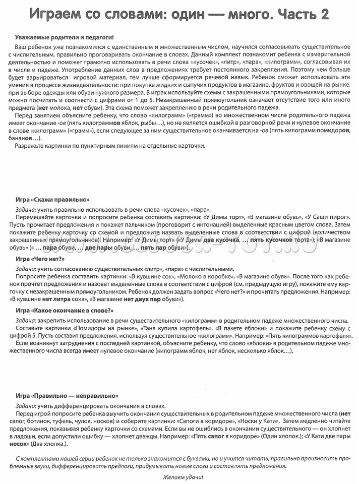 Учебно-игровой комплект "Играем со словами. Один - много. Часть 2" для детей 4-7 лет.