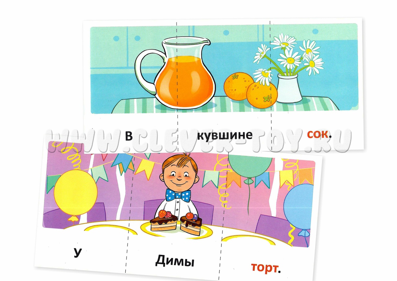 В наборе 12 разрезных карточек размером (21х10 см), из которых получаются 36 карточек размером 7х10см.