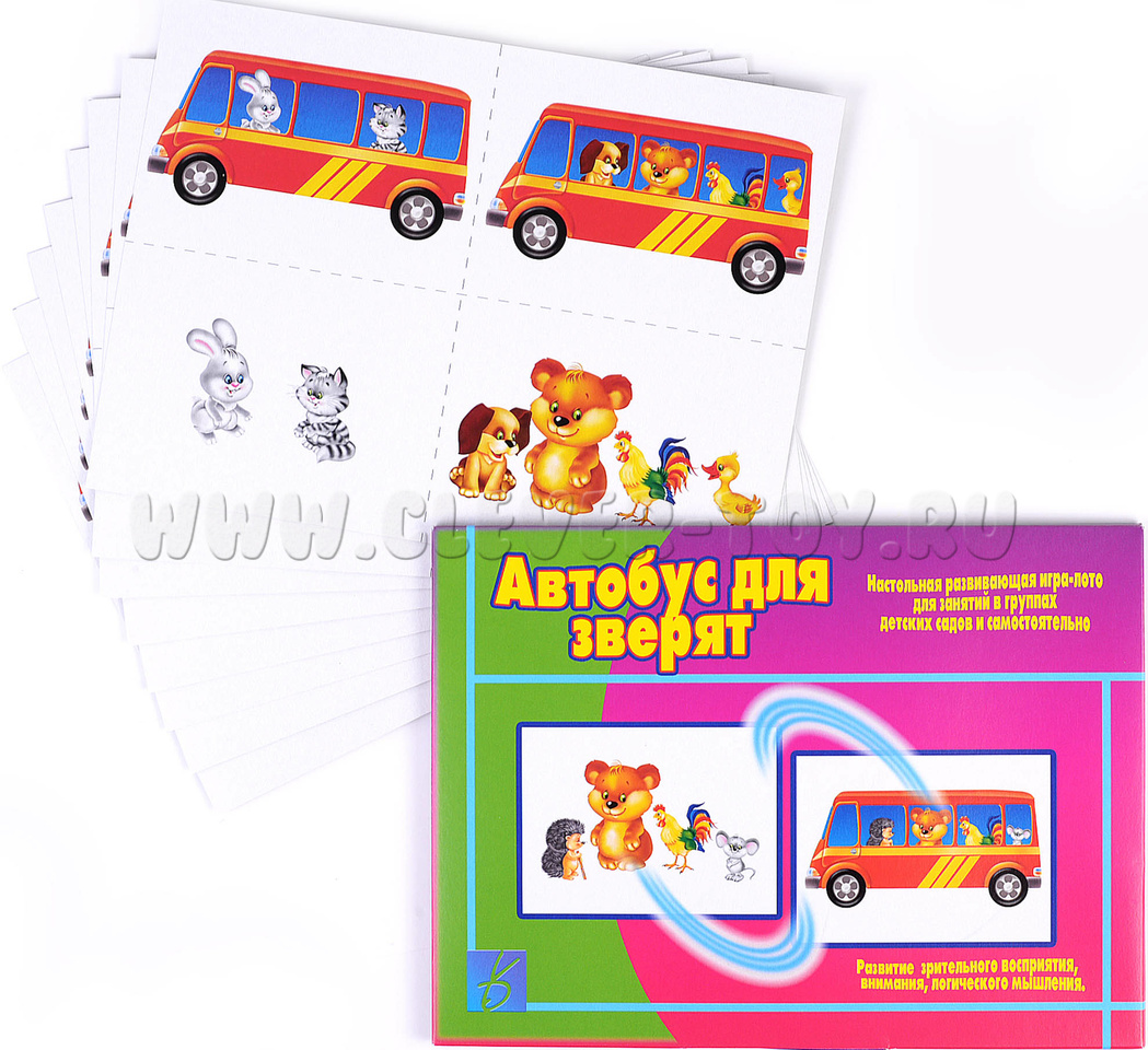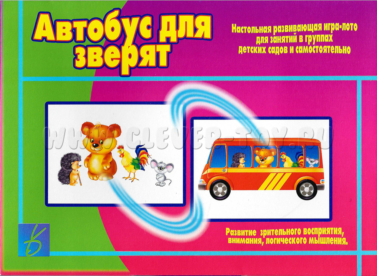 Развивающая игра-лото "Автобус для зверят" подойдет малышам от 2 до 5 лет и поможет им в: