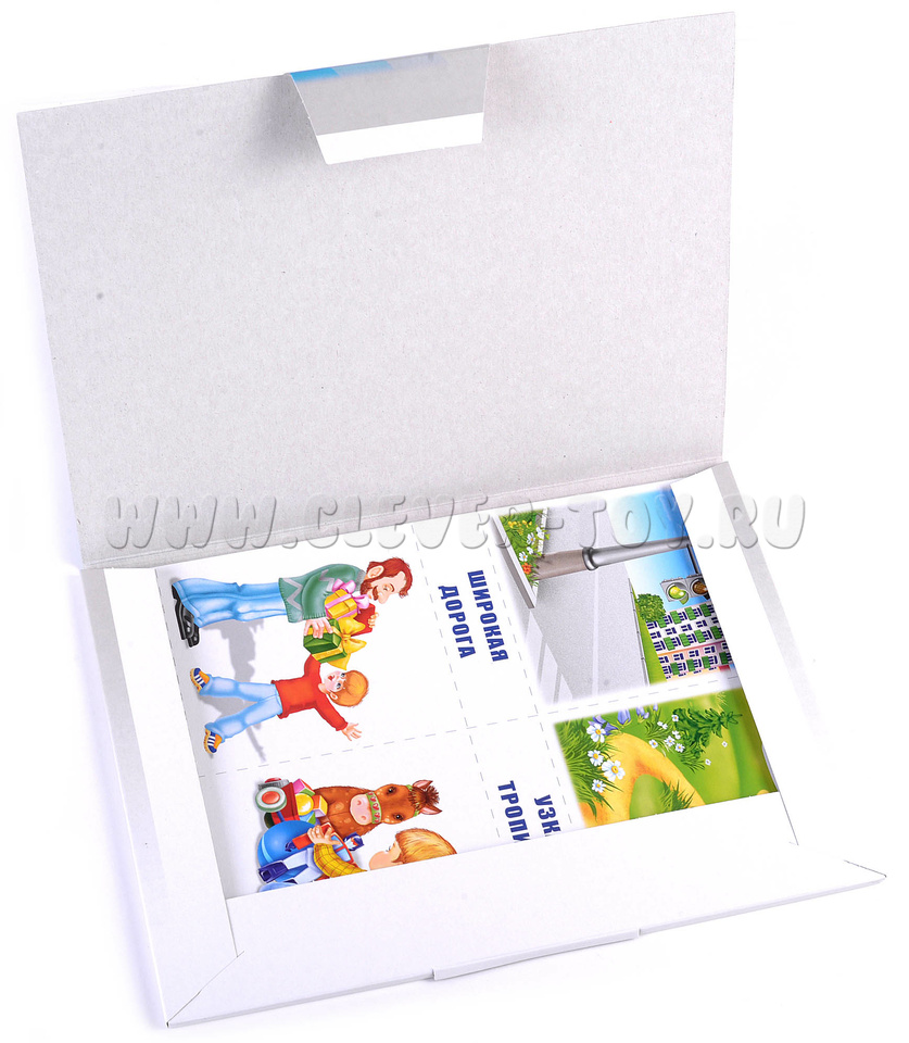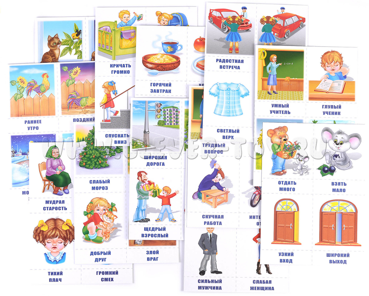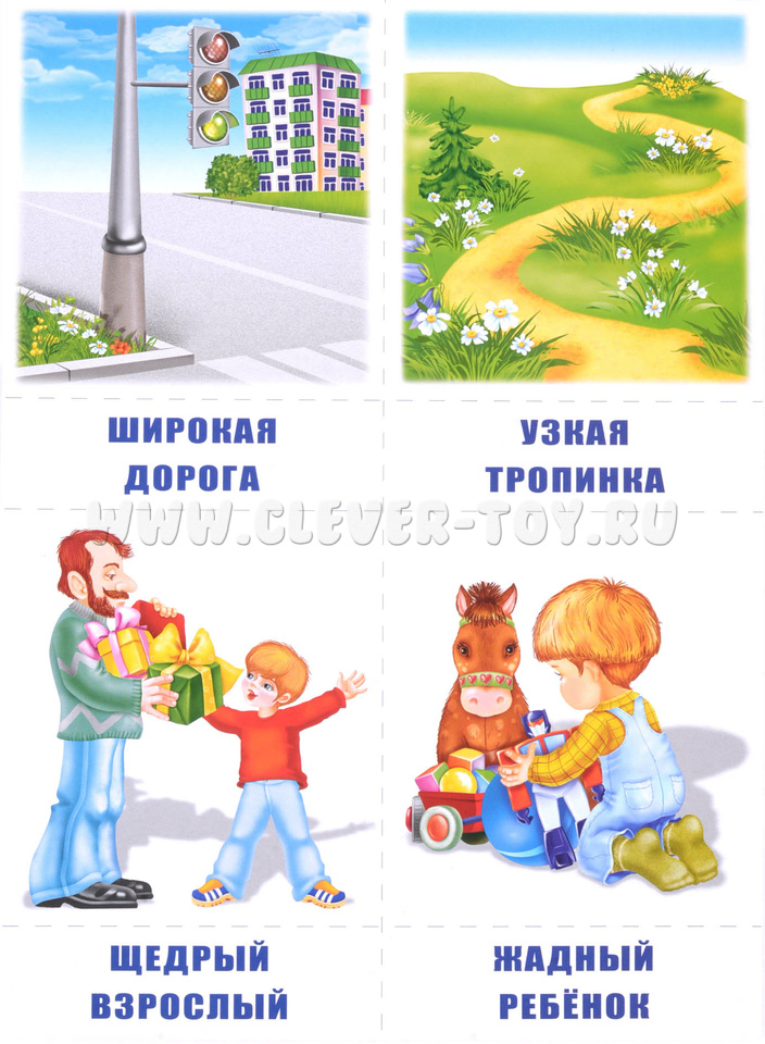 3. Ведущий читает ребенку словосочетание, а ребенок должен самостоятельно назвать противоположное по смыслу словосточетание и подобрать соответствующую картинку.