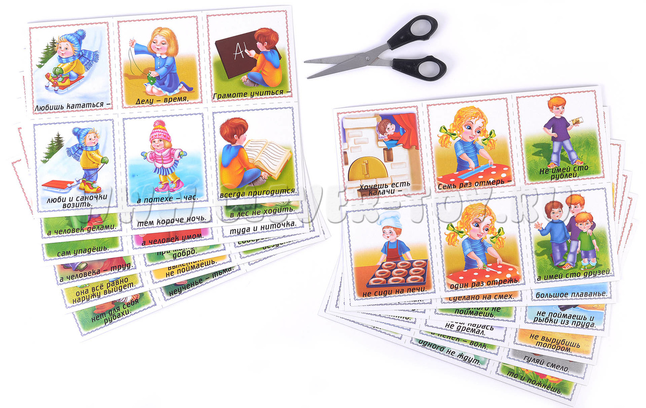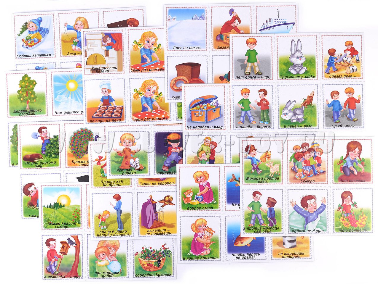 Игра-лото для детей 5-7 лет.С помощью этой игры дети повторят русские народные пословицы,и научатся объяснять их смысл.