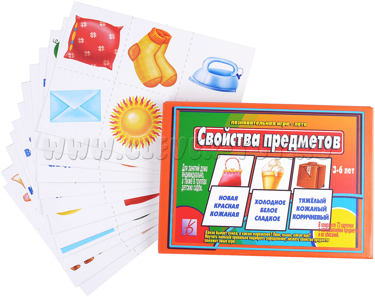 Развивающая игра-лото "Свойства предметов" подойдет для занятий с детьми как младшего, так и старшего дошкольного возраста и поможет ребенку в: