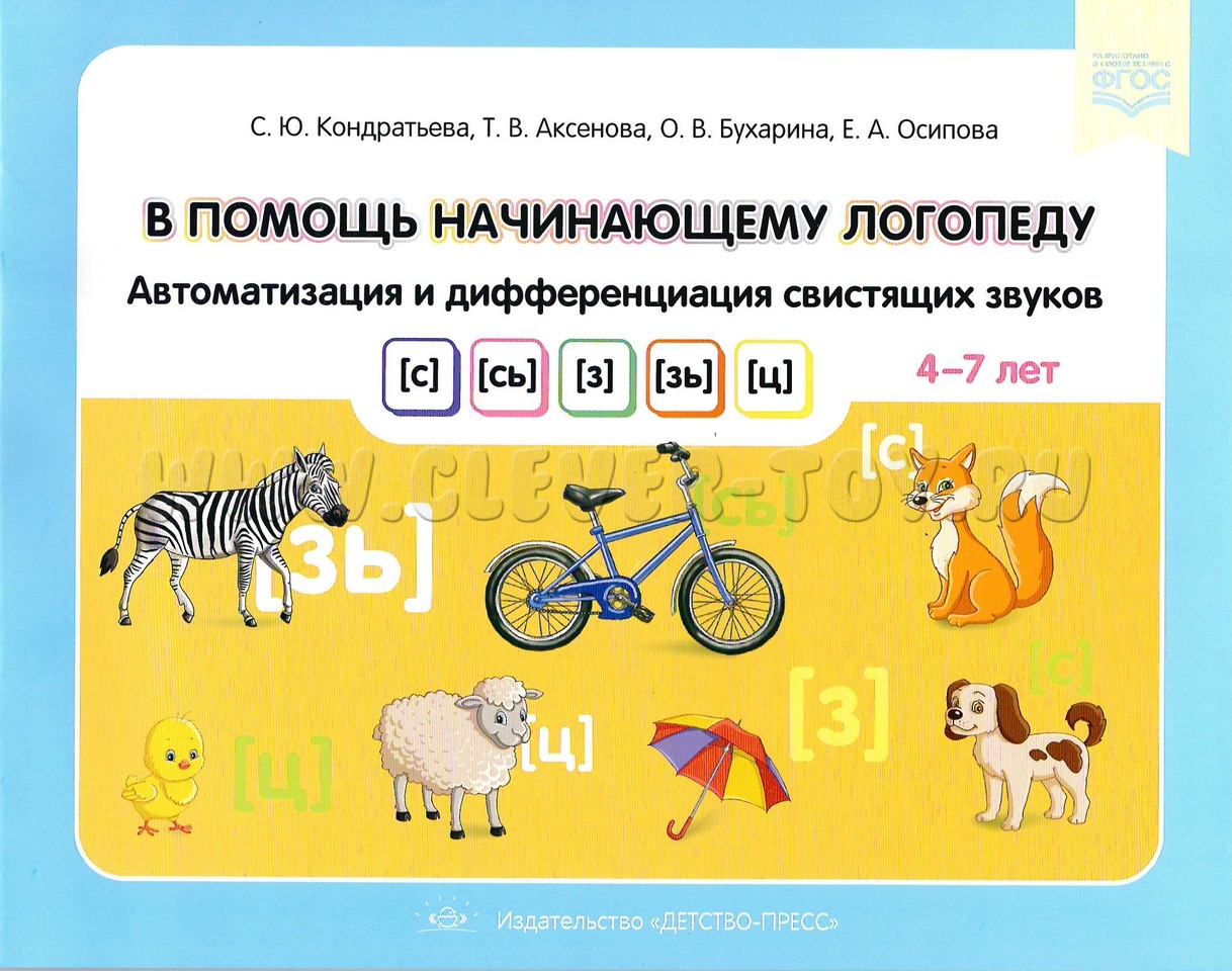 В помощь начинающему логопеду. Автоматизация и дифференциация свистящих звуков [с], [сь], [з], [зь], [ц]. 4-7 лет. ФГОС.