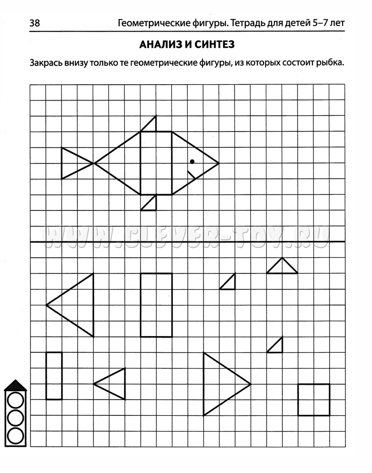 Игровые задания помогут ребенку в занимательной форме ознакомиться с основами геометрии, развить зрительное восприятие и произвольное внимание. Ребенок научится рисовать геометрические фигуры в клетке, символические изображения предметов окружающего мира, закрепит знания о геометрических фигурах и формах.