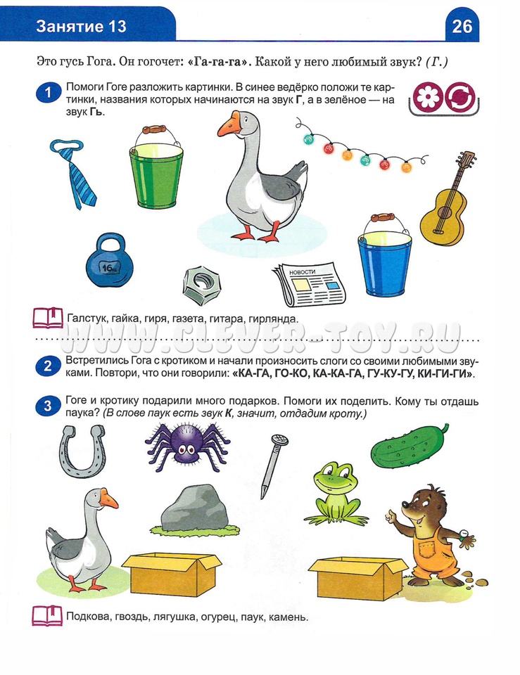 Дети постепенно осваивают операции звукового и слогового анализа и синтеза, понятия "звуки", "слоги", "слова", знакомятся с характеристиками звуков. Предложен особый порядок изучения букв и звуков, который учитывает следующее правило: нельзя давать графический образ буквы и упражнения со звуком, если ребёнок неправильно его произносит.