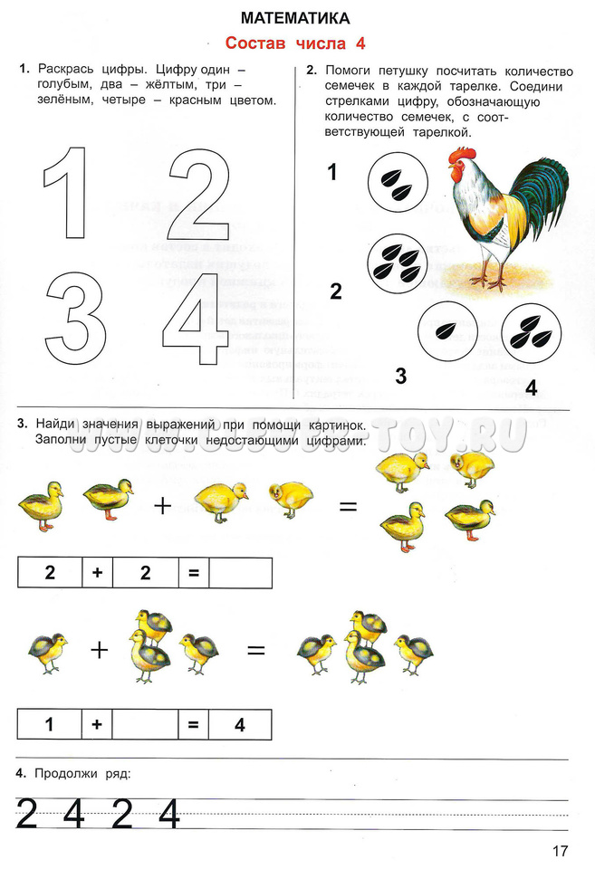 • Математика, состав числа 4.